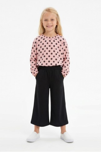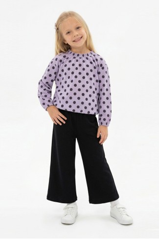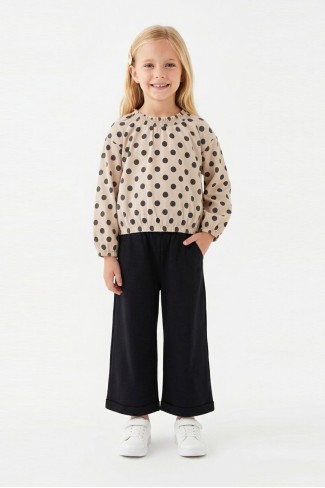 Kız Çocuk Puantiyeli Uzun Balon Kollu Bluz Ve Geniş Paça Pantolon İkili Takım