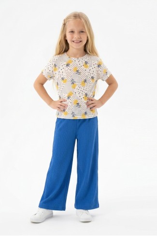 Kız Çocuk Delikli Düğmeli Kısa Kollu Bluz Ve İspanyol Paça Pantolon Takım