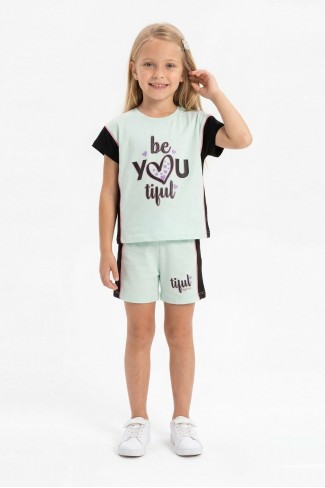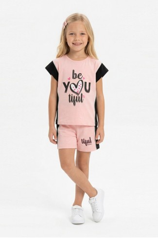 • Kız çocuk kalp baskılı kısa kollu şortlu takım, yaz ayları için ideal bir seçimdir.;