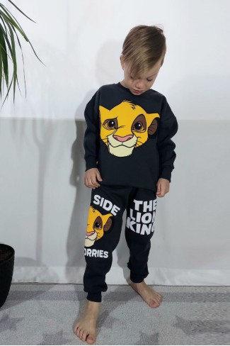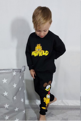 Üç İplik Şardonlu Baskılı Siyah Takım