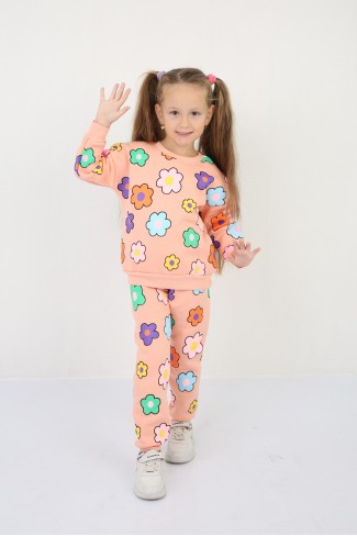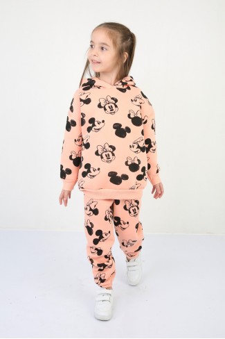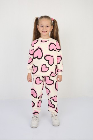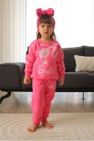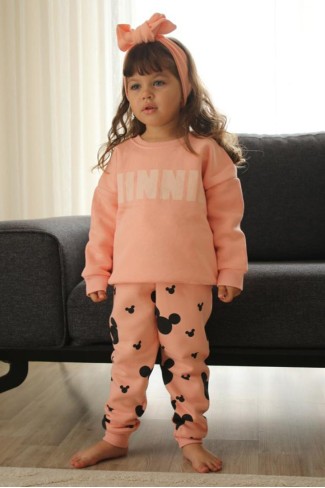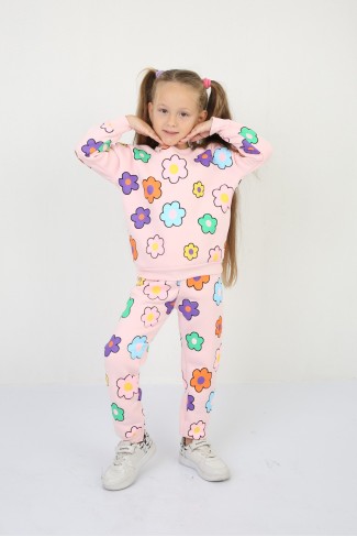 Üç İplik Şardonlu Baskılı Pembe Takım
