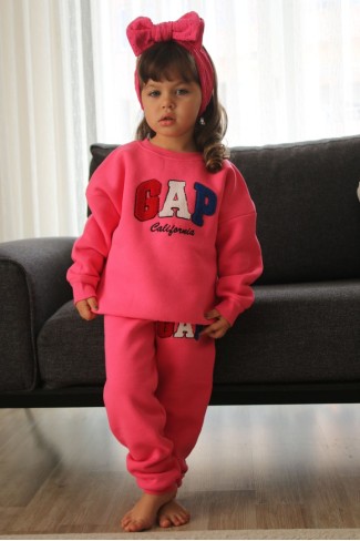 Üç İplik Şardonlu Baskılı Fuşya Takım
