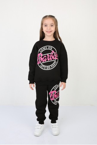 Üç İplik Şardonlu Baskılı Siyah Takım