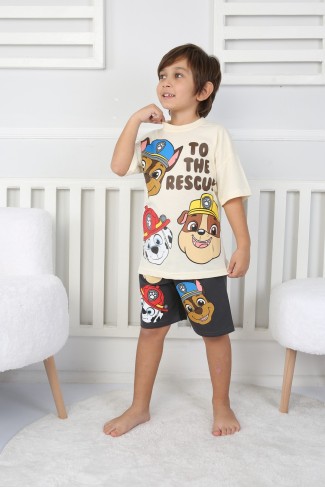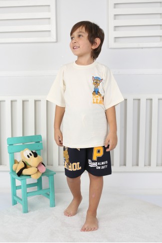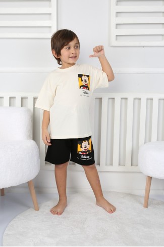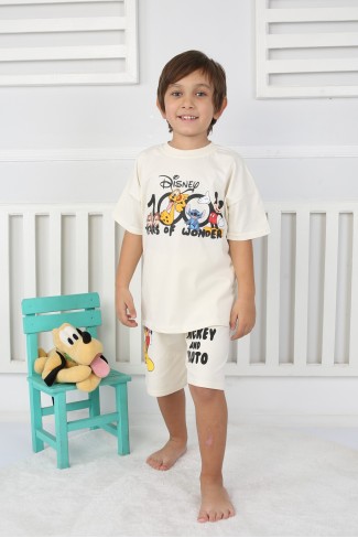 Baskılı Tişört Ve Şortlu Krem Takım