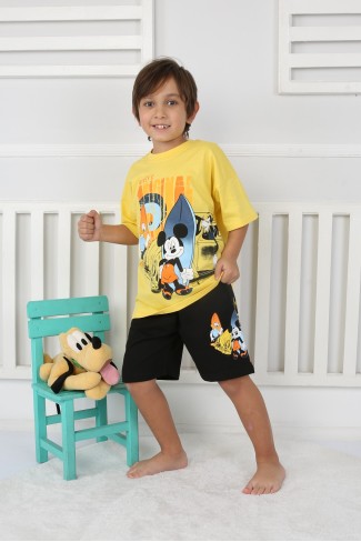 Baskılı Tişört Ve Şortlu Sarı Takım