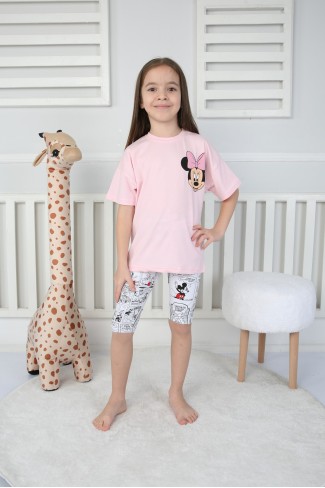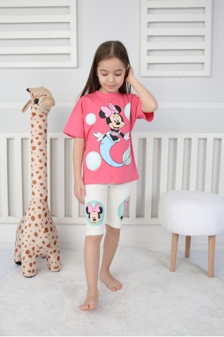 Baskılı Tişört Ve Taytlı Pembe Takım