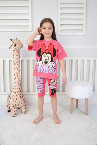 Baskılı Tişört Ve Taytlı Fuşya Takım