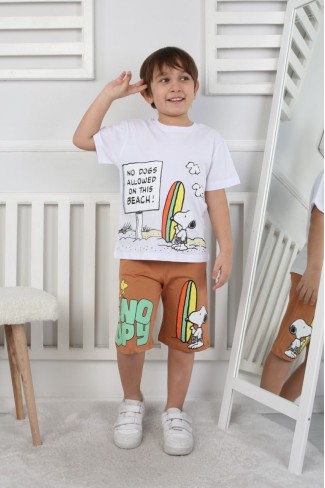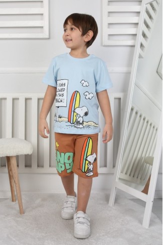 Erkek Çocuk Baskılı %100 Pamuk Süprem Kumaş Reaktif Boyama Sörf Temalı Şortlu Takım