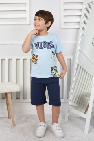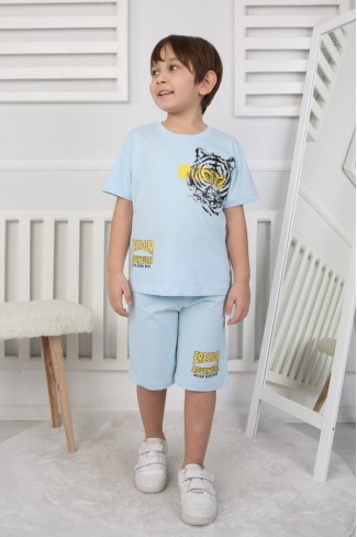 Erkek Çocuk Baskılı %100 Pamuk Süprem Kumaş Reaktif Boyama Şortlu Takım