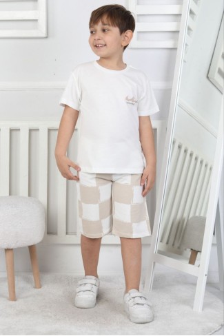 Erkek Çocuk Arkası Baskılı %100 Pamuk Reaktif Boyama Kareli Şortlu Takım