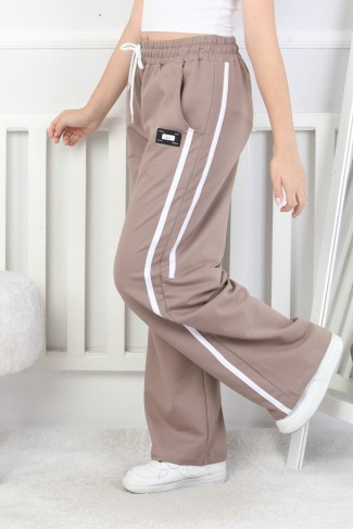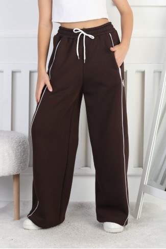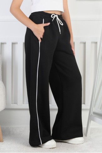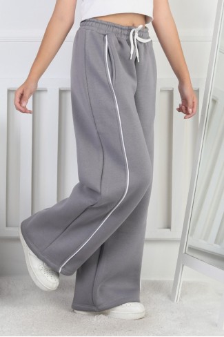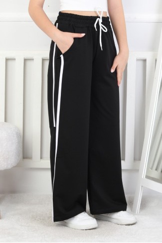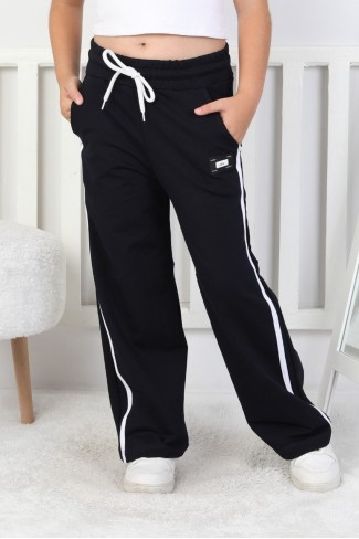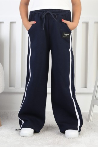 Üç İplik Şardonlu Bol Paça Tek Çizgi Kız Çocuk Eşofman Altı