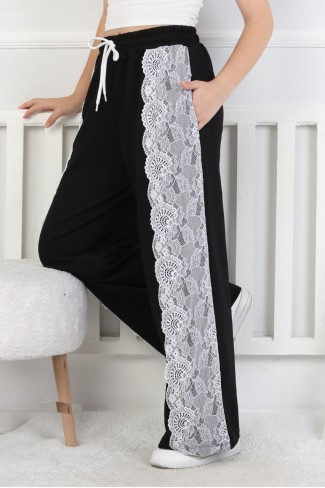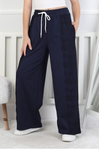 İki İplik Güpürlü Bol Paça Kız Çocuk Eşofman Altı