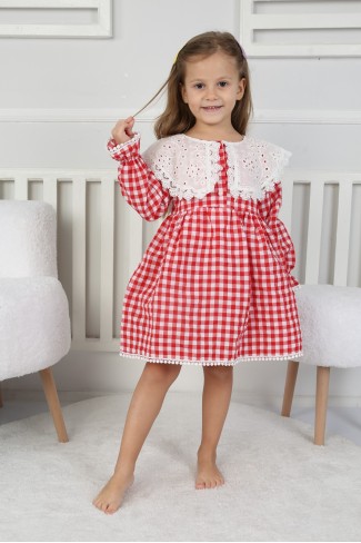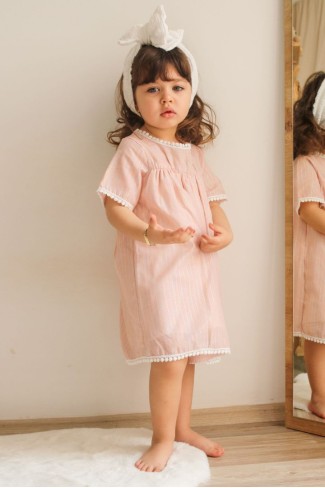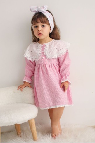 2-8 Yaş Bebe Yaka Pitikareli Elbise