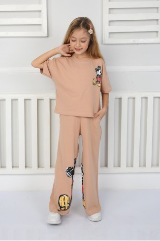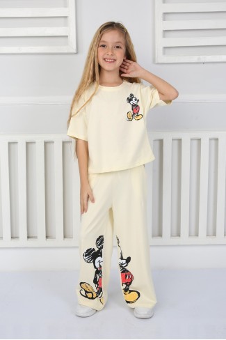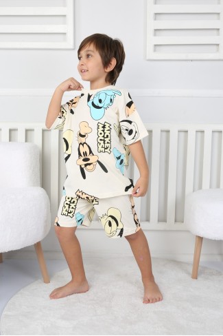 2-8 Yaş Baskılı Tişört Ve Şortlu Krem Takım
