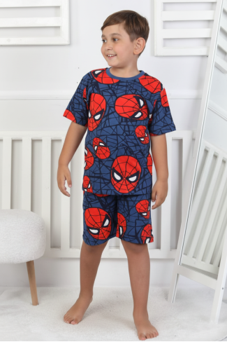 Erkek Çocuk Örümcek Adam Desenli %100 Pamuk Süprem Kumaş Kısa Kollu Şortlu Pijama Takımı