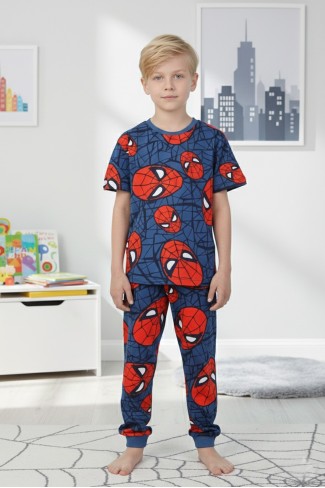 Erkek Çocuk Örümcek Adam Desenli %100 Pamuk Süprem Kumaş Kısa Kollu Pijama Takımı
