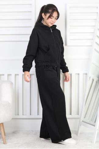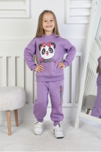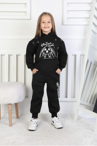 Üç İplik Baskılı Kapüşonlu Kız Çocuk Takım
