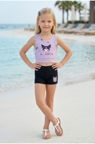 Kız Çocuk Polyester + Elastan Karakter Baskılı Büstiyer ve Boxer Şort İkili Mayo