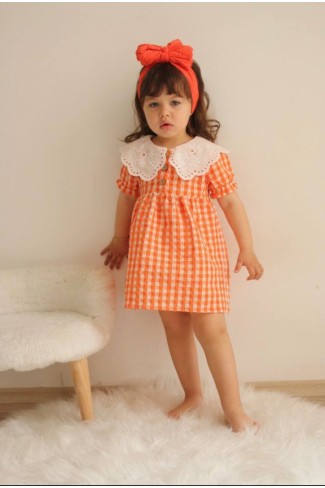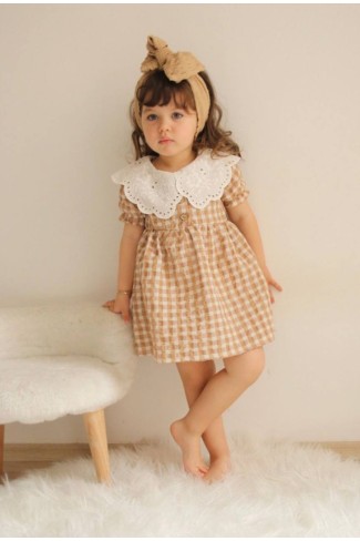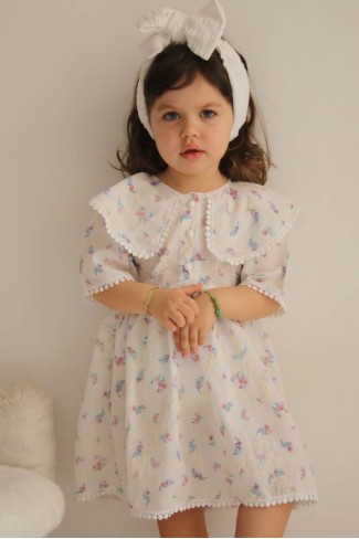 2-8 Yaş Bebe Yaka Desenli Elbise