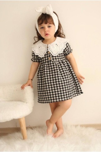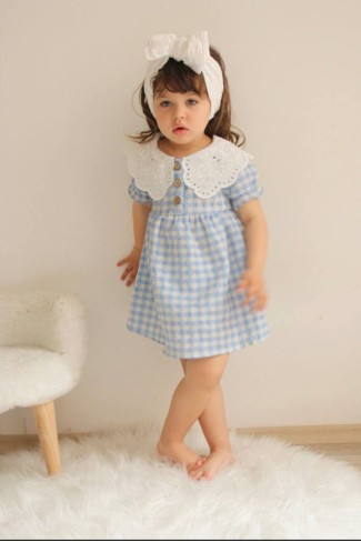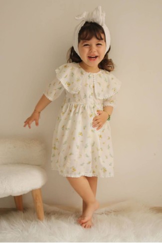 2-8 Yaş Bebe Yaka Düğmeli Elbise