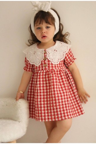 Bebe Yaka Kısa Kol Kırmızı Elbise