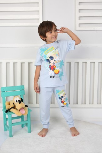 2-8 Yaş Bebe Yaka Desenli Mavi Elbise