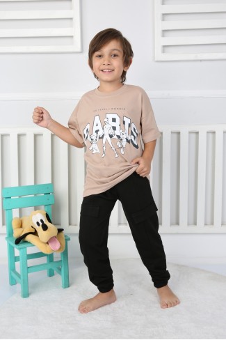 2-8 Yaş Bebe Yaka Düğmeli Pudra Elbise