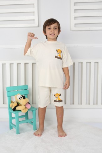 2-8 Yaş Arka Baskılı Tişört Ve Şortlu Krem Takım