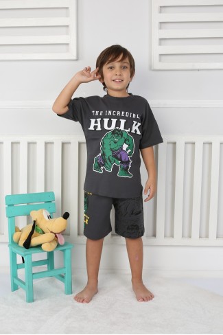 2-8 Yaş Arka Baskılı Tişört Ve Şortlu Antrasit Takım