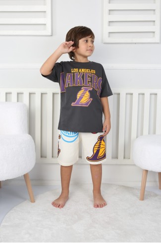 Baskılı Tişört Ve Şortlu Antrasit Takım