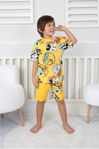 2-8 Yaş Arka Baskılı Tişört Ve Şortlu Sarı Takım