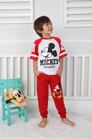 Baskılı Tişört Ve Şortlu Kırmızı Takım