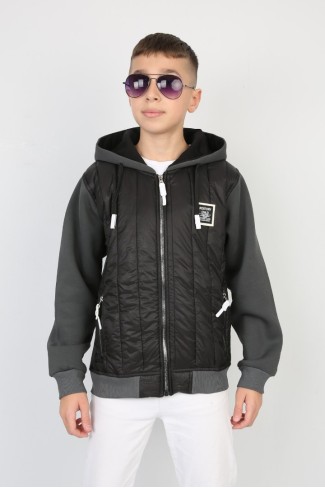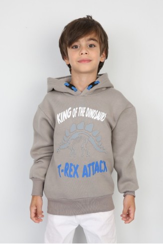 Üç İplik Kapşonlu Fermuarlı Baskılı Saks Sweat