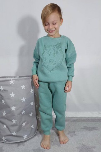 Üç İplik Şardonlu Baskılı Haki Takım