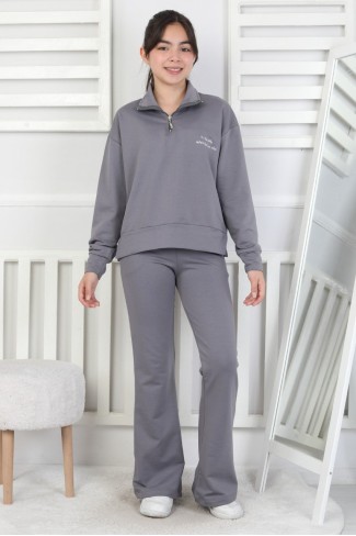 İki İplik Arkası Baskılı Yarım Fermuarlı Kız Çocuk Takım