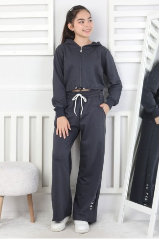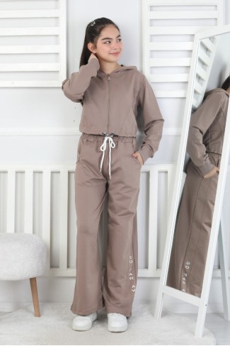 Kapüşonlu Fermuarlı Bol Paça Kız Çocuk Takım