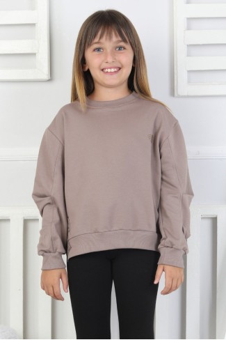 Baskılı Yanı Yırtmaçlı Kız Çocuk Sweatshirt