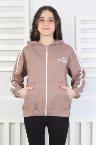 Kapüşonlu Fermuarlı Baskılı Kız Çocuk Sweatshirt