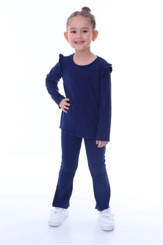 • Kız çocuk omuz fırfırlı fitilli kumaş uzun kollu tişört ve İspanyol paça pantolon takım, şık tasarımıyla öne çıkar.;