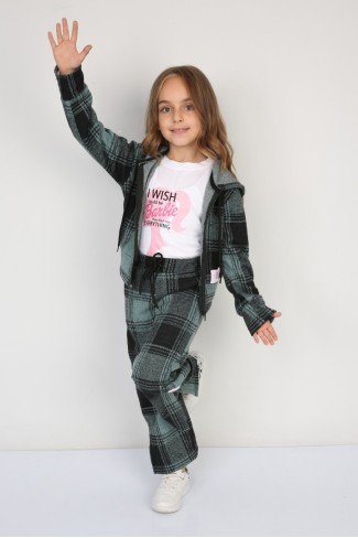 Şardonlu Pamuklu Jakar Kumaş Kareli 3 lü Gri Takım