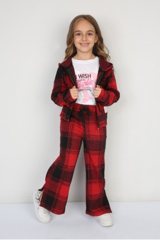 Şardonlu Pamuklu Jakar Kumaş Kareli 3 lü Takım
