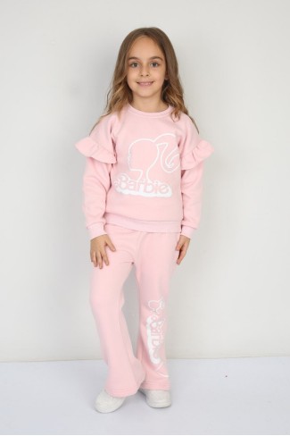 Üç İplik Şardonlu Baskılı Pembe Takım
