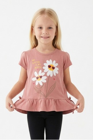 • Kız çocuk papatya baskılı kısa kollu tişört, sevimli ve enerjik tasarımıyla çocukların günlük kombinlerine neşe katar.;