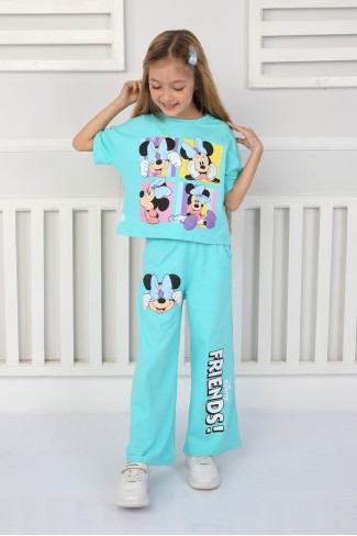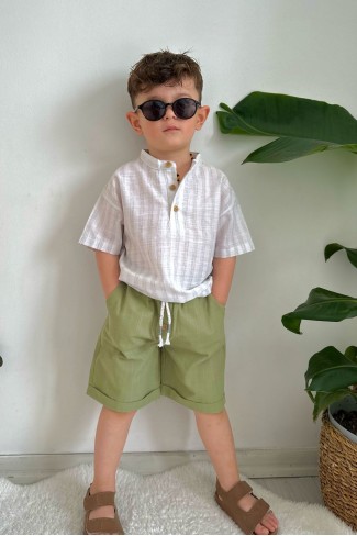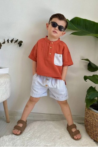 %100 Coton Dokuma Kumaş Baskılı Üst Kot Şortlu Takım