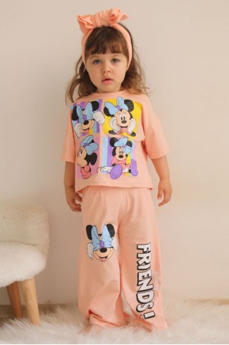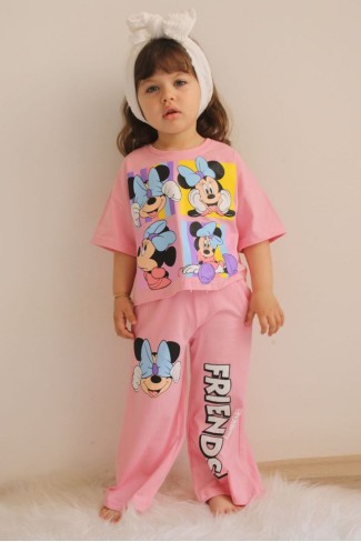 Bebe Yaka Tişört Ve Pullu Etekli Pembe Takım