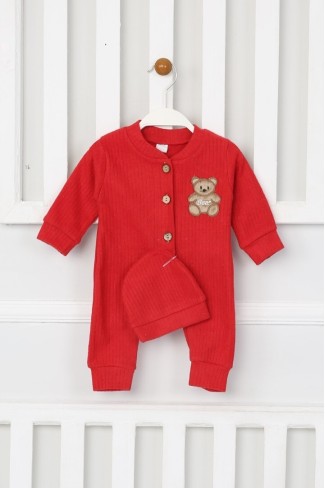 Şardonlu Bear Düğmeli Şapkalı Tulum