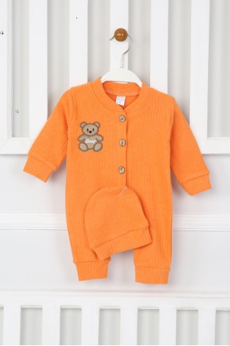 Şardonlu Bear Düğmeli Şapkalı Turuncu Tulum