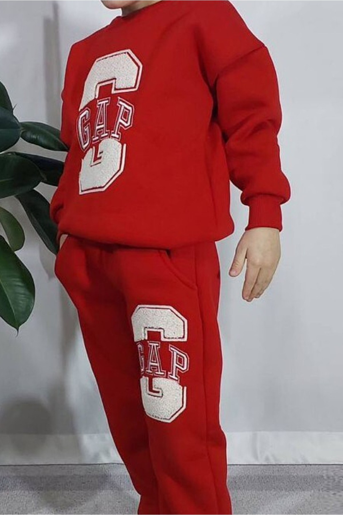 Üç İplik Şardonlu Baskılı Kırmızı Takım