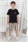 Erkek Çocuk Arkası Baskılı %100 Pamuk Reaktif Boyama Kareli Şortlu Takım
