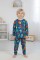 Garson Erkek Çocuk Dinozor Desenli %100 Pamuk Reaktif Boyalı İnterlok Kumaş Uzun Kollu Pijama Takımı